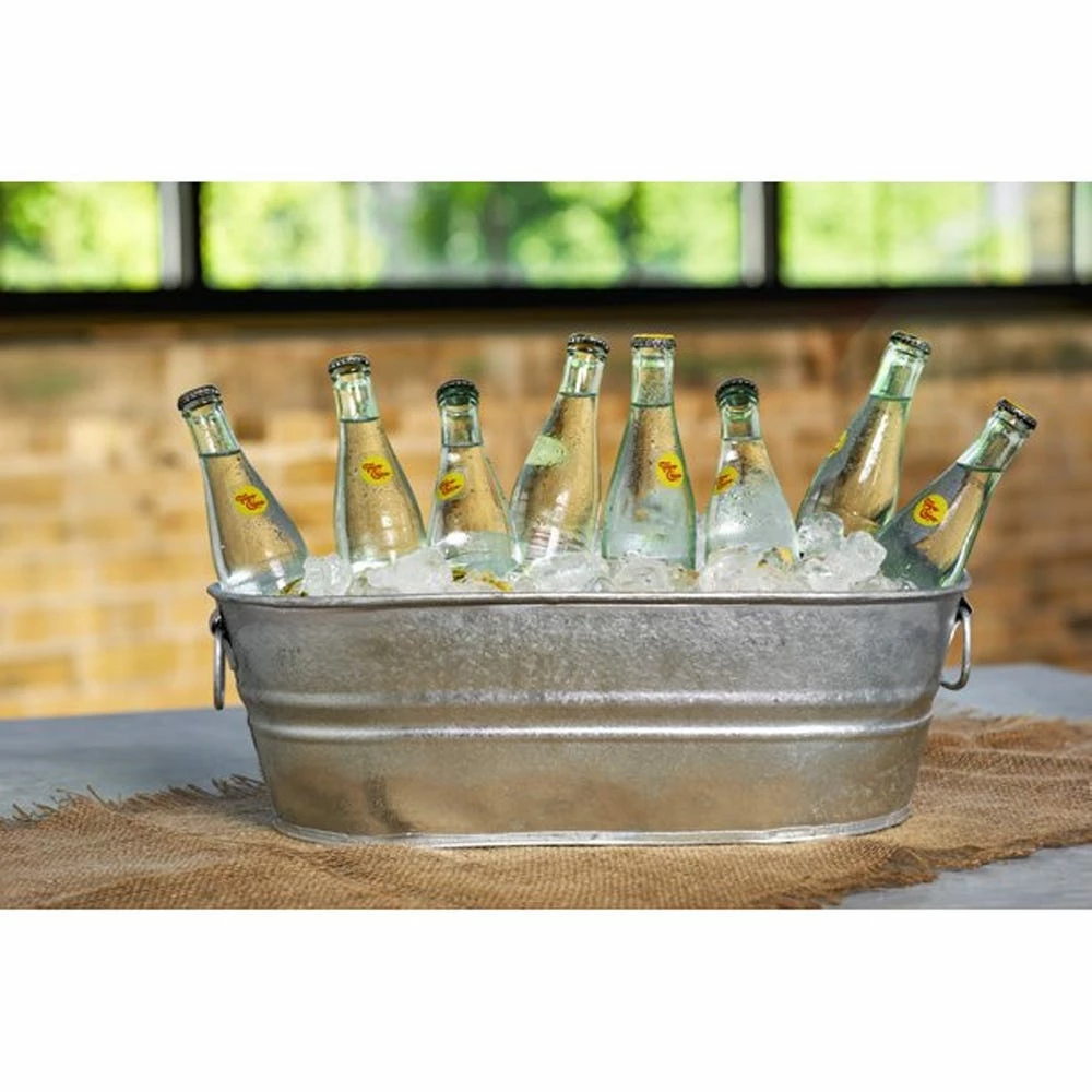 Built with the highest quality hot dipped steel for a vintage/classic look, this oval tub is durable and made to last. Features an offset bottom to keep the tub off the ground and durable wire handles for easy portability. This tub is ideal for wet or dry storage, icing down beverages, outdoor decor, planting and more. A stronger alternative to plastic that won’t fade, crack or peel. Each tub is rodent proof, recyclable, weather resistant, and watertight. May contain globally sourced materials.