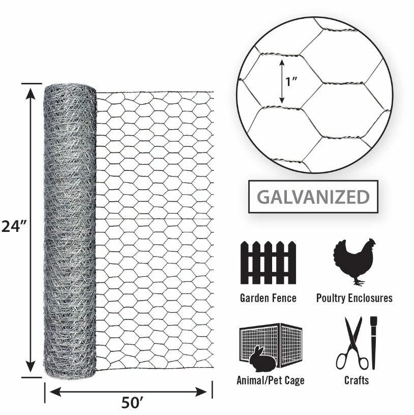 24in H x 50ft L galvanized poultry netting features a 1in hexagonal mesh weave and is both lightweight and durable. This is an extremely versatile product that can be used for a number of applications, including animal containment, temporary fences, chicken coups and cages, and craft projects. It provides great protection and support for plants, erosion control, and compost containment. Poultry Netting is an economical solution that is easy to install and alter to meet your needs.