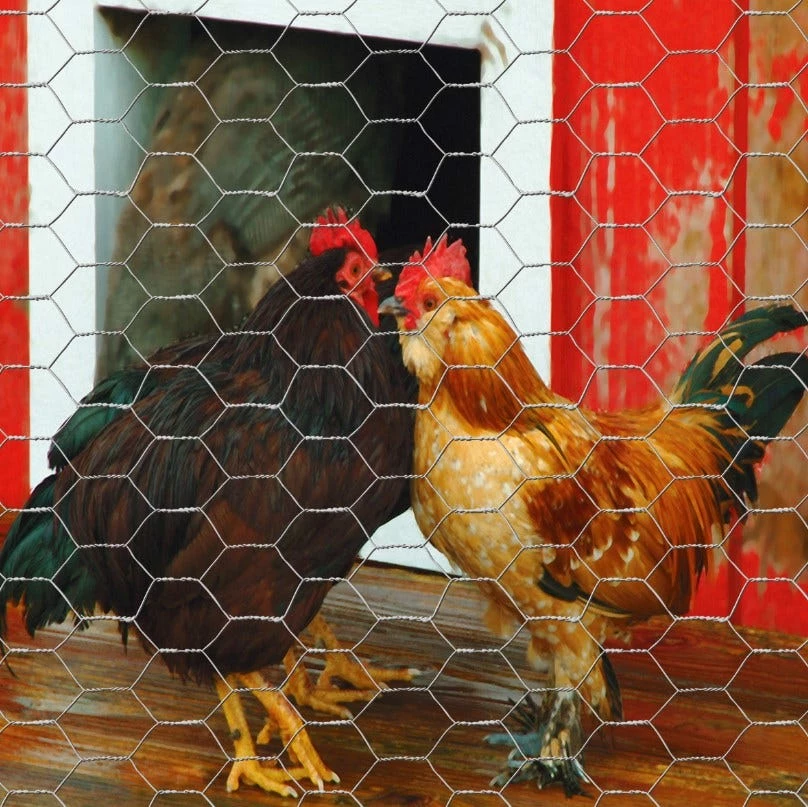 48in H x 50ft W Galvanized Hex Netting features a 1in hexagonal mesh weave design and is both lightweight and easy to use. The hex netting is galvanized with a zinc coating for added durability and to help prevent rusting. Chicken wire has many uses such as animal containment, plant protection and support, fencing applications, and many more.