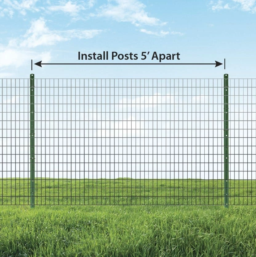 All posts are steel construction with a durable green powder coating. Posts include strategically placed tabs which can be helpful in holding the fence to the posts.