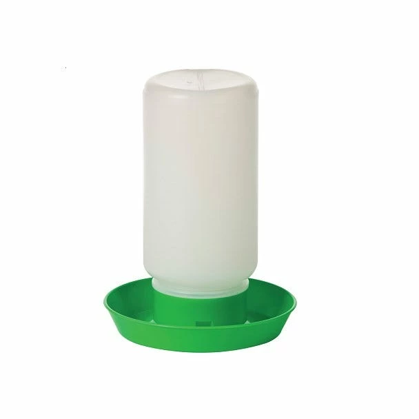 Screw-on base combines with the Little Giant 1-Quart Screw-On Feeder/Waterer Jar (Item No. 690, sold separately) to make a gravity-feed waterer for baby chicks and small birds. 6 inch diameter by 1.5 inch high. Made of heavy-duty polystyrene Available in several colors to mix and match.