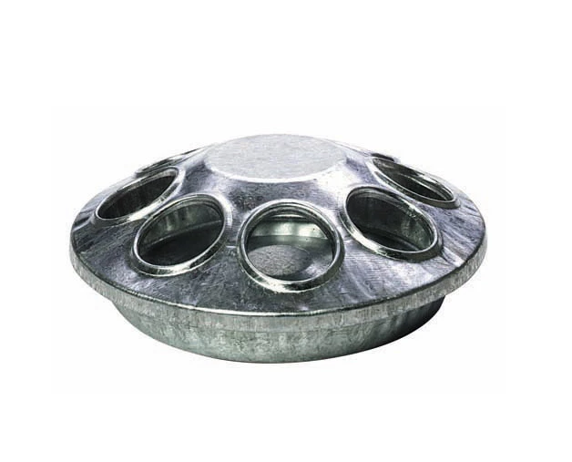 This is a standalone baby chick feeder made of heavy-gauge galvanized steel for years of service. Rounded, embossed edges help reduce chafing on chicks’ neck and head. Eight feeding holes, with snap-on cover for easy filling and cleaning. 6 inch diameter by 2 inch high.