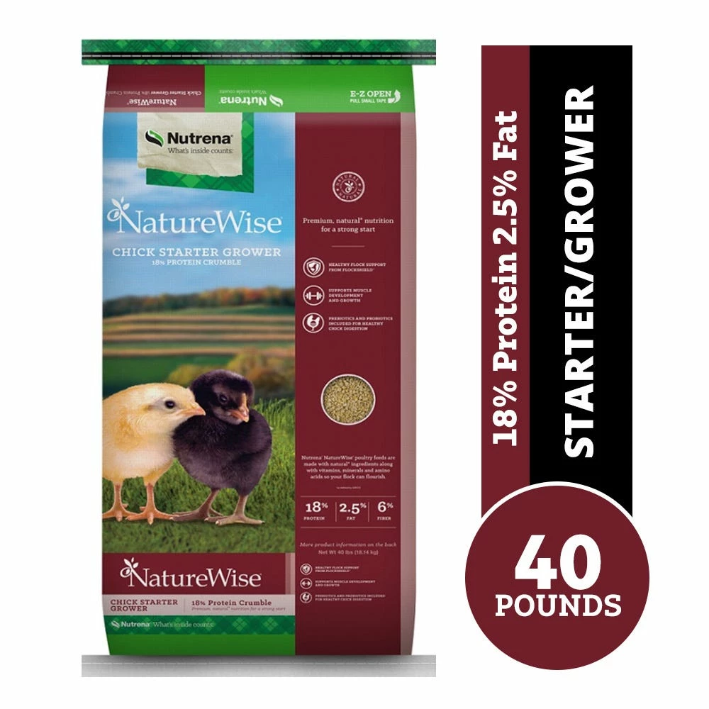 NatureWise Chick Starter 18% Crumble is designed to keep your baby chicks happy and healthy. Offering the balanced nutrients they need from the very beginning, it’s your best choice for premium, high-quality nutrition.