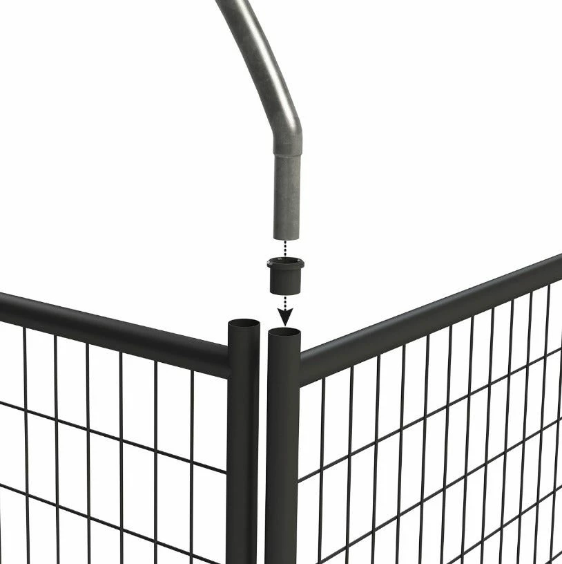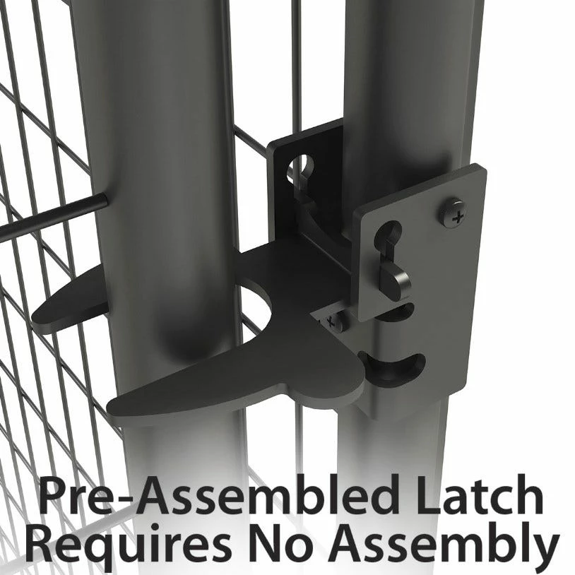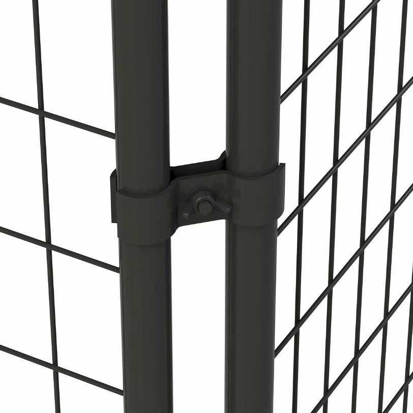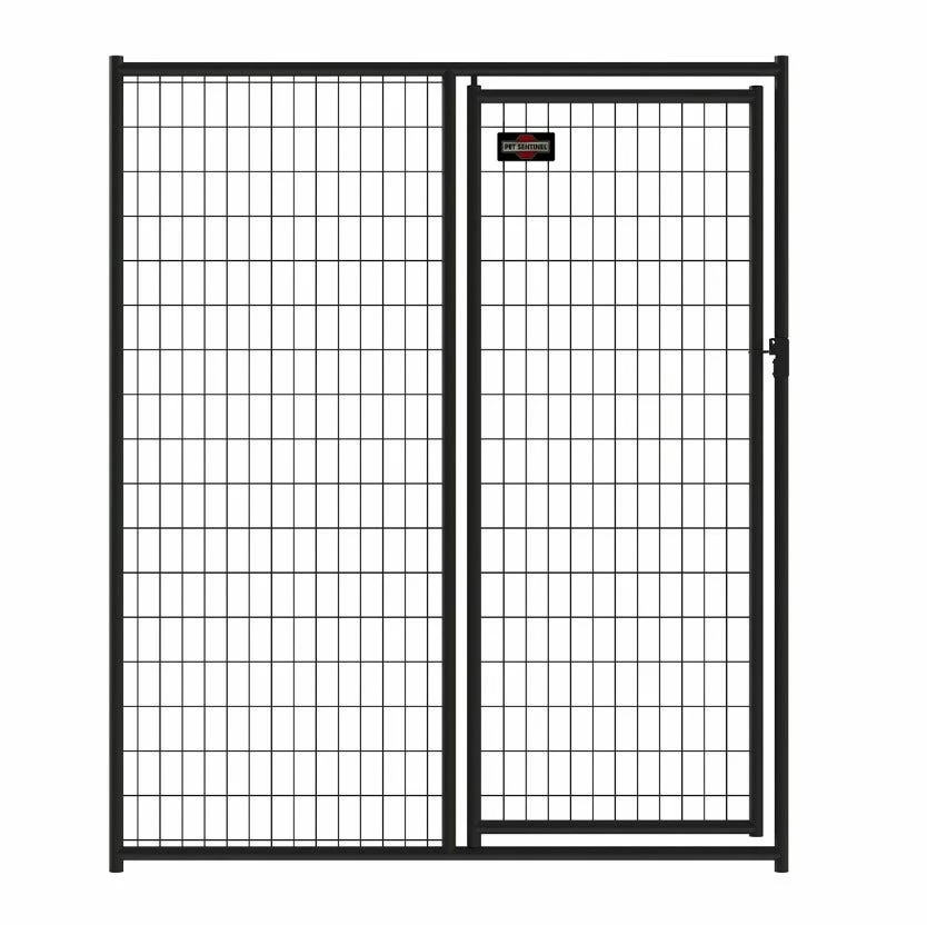 6ft H x 5ft W welded mesh kennel gate is a safe and secure option that accommodates a variety of pets. The gate is constructed of powder-coated steel, so kennel will withstand the eliminates for years to come. The gate features 1 in. raised legs for easy clean-out and is designed to accept kennel covers (sold separately) with its strong round tube design. Gate comes pre-assembled for quick and easy installation and includes a latch. Gate and panels connect together with tool-less clamp connect design. This option allows to you to customize the size of your kennel by buying the amount of panels and gates you need. Panels and additional gates sold separately.