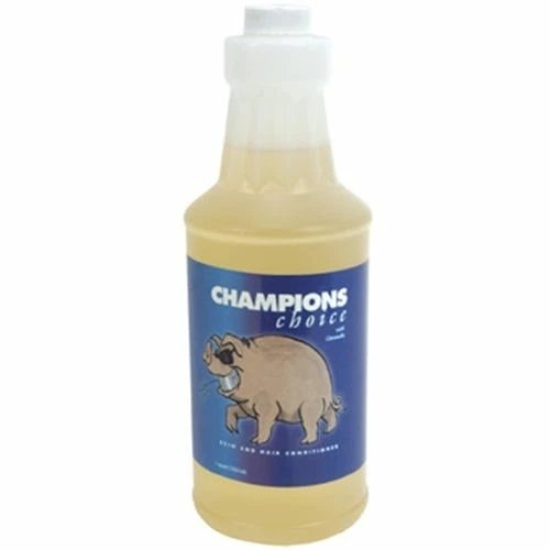 Champion’s Choice prevents dry, scaly skin, and hair for pigs. An excellent daily skin care product that won’t clog pores. Contains natural insect repellent. Darkens colored hogs and brightens white hogs.