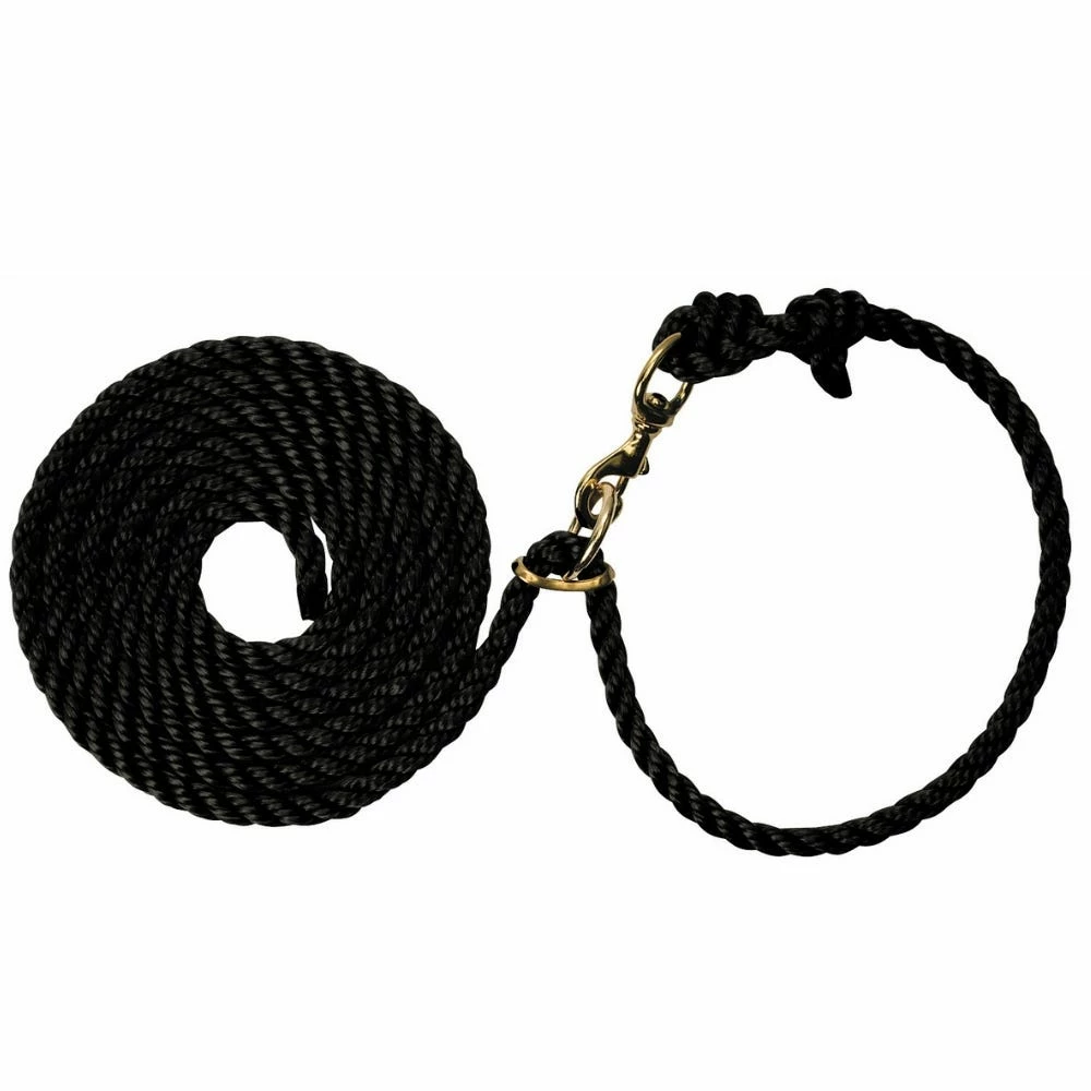 Made from twisted, tight weave polypropylene, this neck rope features a slide adjustment for easily fitting any neck size. A braided snap end offers added strength. Brass plated hardware. Measures 1/2″ x 10′.