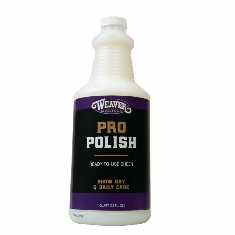 Formulated as a light hair polish that is non-sticky when dry, this product adds shine to hair while repelling dust and dirt and protecting follicles from the harsh environment. Stierwalt ProPolish is excellent for clipping, provides an ideal sheen before entering the show ring and can be used daily to promote healthy hair. Recommended for show cattle but suitable for use on all livestock. Kirk’s Tip: For heavy sheen users, mix 1/4 liquid ProCharge to 3/4 ProPolish for just the right amount of conditioning properties and shine. Quart (32 fl. oz.)