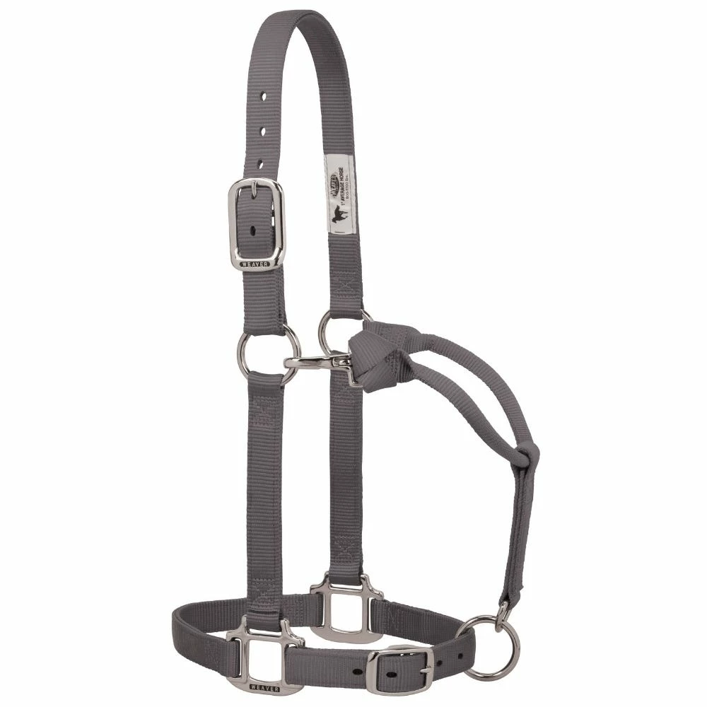 Same original design you know and love available with non-rust chrome plated hardware for an updated look. Premium nylon construction for superior performance these halters feature a triple-ply cheek design and rolled throat for added comfort. Box-stitched at stress points for added strength. Throat snap is looped on for easy replacement.
