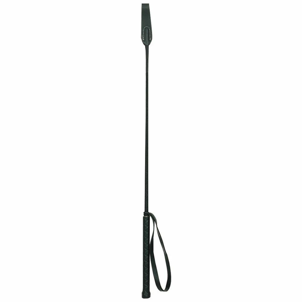 - black, riding crop with a 20″ shaft